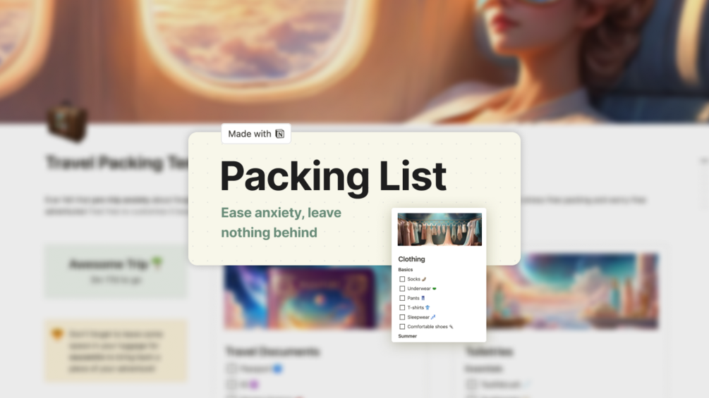 Travel Packing List – Ease Anxiety, Leave Nothing Behind (Notion)